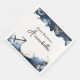 These custom birthday party napkins feature a celestial horoscope theme in shades of blue and gold. The top and bottom borders feature a celestial night sky pattern with gold accents and a crescent moon. A Sagittarius horoscope symbol is printed in the bottom left beside. A sample "Happy Birthday" message is printed across the centre followed by a sample name printed in an elegant script font. You can personalize the napkins to include your own custom name or other text.