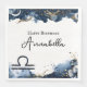 These custom birthday party napkins feature a celestial horoscope theme in shades of blue and gold. The top and bottom borders feature a celestial night sky pattern with gold accents and a crescent moon. A Libra horoscope symbol is printed in the bottom left beside. A sample "Happy Birthday" message is printed across the centre followed by a sample name printed in an elegant script font. You can personalize the napkins to include your own custom name or other text.