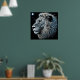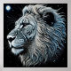 Ai art depicting a black and white lion on a mystical night with a starry background.