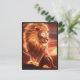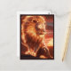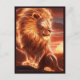A mesmerizing cosmic scene featuring a celestial lion, crafted from swirling, energetic light. The lion's eyes burn brightly with a radiant glow, while its magnificent golden mane and fur blaze with an intense, fiery brilliance. Perched on a rocky terrain, the majestic creature stands as a beacon of primal energy. The sun sets in the background, bathing the landscape in warm, rich hues of orange and pink, evoking a sense of wonder and awe.