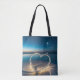 Immerse yourself in the celestial charm of this shoulder tote design, featuring a luminous heart reflected in tranquil waters under a starlit sky, embodying eternal love.