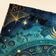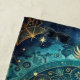 This celestial theme beach towel features lotus flowers, mandalas, moons, ethereal clouds, and other galaxy objects in various shades of teal, sage green, blue, and gold. Your monogram initial and name appear in gold and dark teal against a dusty sagey teal background, trimmed in gold. Theh colours and designs have a 70s boho vintage look. Make sure to type your initial and name in the Personalize box. If you like sacred geometry, metaphysical practices, or zen looking themes, this might be the right towel for you. This towel would also be great to take along with you to yoga class.