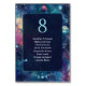 Bring cosmic elegance to your reception with this Celestial Midnight Moon Phases Wedding Seating Table Number. Set against a mesmerizing blue and teal galaxy background, this design features delicate moon phases arching across the bottom, symbolizing love through every phase of life. The ethereal celestial hues and starry accents create a dreamy, otherworldly atmosphere perfect for a stargazer, boho, or moonlit wedding theme. Both practical and poetic, this table number adds a mystical touch to your celebration while helping guests find their seats in style.