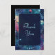 Express your heartfelt gratitude with this Elegant Celestial Midnight Moon Phases Wedding Thank You Card. Featuring a mesmerizing blue and teal galaxy background, this design is adorned with shimmering stars and graceful moon phases, symbolizing the timeless beauty of your love. The celestial motif adds a touch of mystique and romance, creating a stunning keepsake for your guests. Perfect for a moonlit celebration, this thank you card is a graceful way to end your cosmic wedding journey.