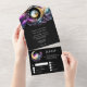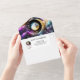 A beautiful all-in-one celestial moon invitation featuring full and crescent moons edged with glowing magenta, white, faux gold and blue stars set against a black background that makes them pop. These generative content graphics are ideal for a starry night, galaxy or celestial theme wedding or special event. The bottom third has a tear off response card with personalized rsvp address for your guests to complete.