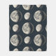 Elegant moon phase and celestial pattern blanket featuring crescent moons, stars, and radiant lunar details on a dark background. Ideal for astrology lovers, moon enthusiasts, spiritual seekers, stargazers, and fans of mystical celestial style.