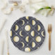 This ethereal repeating pattern features a celestial illustration of the moon’s enchanting cycle from new to full, each phase surrounded by a delicate diamond lattice of stars and vines. Set against a deep, midnight blue, this lunar design invites the wonder of the cosmos and the deep quiet of the night.
