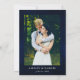 Celestial Wedding invitation. Watercolor blue night sky with stars and the moon. Burgundy Blue Pink Floral. Greenery Eucalyptus Leaves. Photo Back.