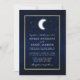 Celestial Wedding Gold Frame invitation. Watercolor blue night sky with stars and the moon. Photo back.