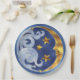 Lovely celestial moon and stars with curling clouds designed with a stained glass effect. in blue and gold on quality paper plates