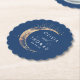 Celestial Navy Blue and Gold Stars Moon Wedding Paper Coaster