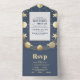 Celestial Navy Gold Crescent Moon Wedding All In One Invitation
