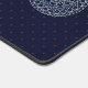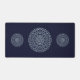 A lace-like concentric circle mandala in light blue with bright blue and gold star-like dots spangled among the layers makes for a fun, design that brings to mind a starry night sky.