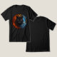 This stunning fantasy design features a black panther enveloped in the elemental forces of fire and ice, framed by an ornate celestial mandala. One side of the panther glows with fiery orange embers, while the other shimmers with cool cosmic blues, symbolizing duality, balance, and inner power. Its piercing heterochromatic eyes—one burning amber, the other electric blue—draw you into a world of mystical energy and fierce calm.