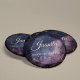 Add a touch of cosmic magic to your celebration with the Celestial Quinceañera personalized button. This charming accessory features a dreamy design of glittering stars, a crescent moon, and distant galaxies against a soft, cosmic backdrop. It's the perfect way to make a statement and add a personalized flourish to any outfit or party favour.