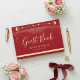 Designed to be both stylish and keepsake-worthy, this wedding guest book helps preserve the special messages and memories from your big day in one beautiful place. The deep red background paired with glowing gold celestial details creates a dramatic and elegant look that suits evening weddings, starry night themes, and couples who love bold, romantic wedding styling.