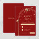 Celestial Red Gold Sun Moon Stars Wedding RSVP Card
