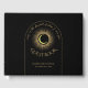 Celestial mystical personalized wedding guest book featuring arch frame with crescent moon and other astrological symbols in black and golden colours and written quote "CAUSE IN THE SKY FULL OF STARS I SAW YOU". This guest book is easily editable. If you need help with the customization of this card or you need more matching products for this collection kindly message me via Zazzle.