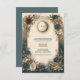 Complement your invitation suite with this celestial themed enclosure card. The design blends a radiant sun and moon medallion with rustic teal and beige florals, ideal for additional details or directions. A perfect match for boho, outdoor, or starlit wedding themes.