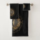 An elegant ancient ethereal sun moon stars towel set that can be customized with your own favourite quote or your name. Black background.