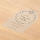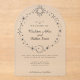 A simple celestial themed wedding invitation with sun, crescent moon and stars in a circle, on an arched frosted acrylic invitation. Available in clear or frosted acrylic. A unique modern style.