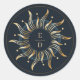 Celestial Sun Navy Blue Golden Elegant Classic Round Sticker