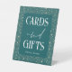 Celestial teal and gold wedding pedestal sign "Cards and Gifts"