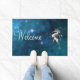 Beautiful vintage heraldry style unicorn illustration set on celestial skies background. Customize with name or other text in white script font.