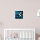 Beautiful poster has vintage heraldry style unicorn illustration set on celestial skies background. Customize with name or other text in white script font.