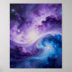 A breathtaking, original painting capturing the dynamic, swirling motion of a nebula or cosmic cloud. The artwork is dominated by vivid shades of deep blue and rich purple, with bright points of light suggesting distant stars and an ethereal energy.