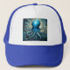 Celestial Waves: The Blue Octopus Fractal Art Trucker Hat