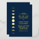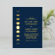 Add a touch of cosmic elegance to your event with our Celestial Wedding Foil Invitation. Immerse yourself in the enchanting simplicity of our design, reflecting the mesmerizing magic of celestial bodies. Our trendy yet timeless design showcases a series of moon phases artistically rendered in real gold foil on a striking navy blue backdrop. This touch of gold adds a hint of warmth and twinkling charm to the cool midnight blue base, further enhancing the inviting allure of the piece. The design maintains a minimalist approach, allowing the celestial elements to truly shine. You can easily personalize to suit your needs, ensuring that each piece echoes your unique style.