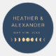 Add a touch of cosmic elegance to your event with our Celestial Wedding Classic Round Sticker. Immerse yourself in the enchanting simplicity of our design, reflecting the mesmerizing magic of celestial bodies. Our trendy yet timeless design showcases a series of moon phases artistically rendered in gold on a striking navy blue backdrop. This touch of gold adds a hint of warmth and twinkling charm to the cool midnight blue base, further enhancing the inviting allure of the piece. The design maintains a minimalist approach, allowing the celestial elements to truly shine. You can easily personalize to suit your needs, ensuring that each piece echoes your unique style.