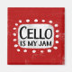 "Cello Is My Jam" is a fun text design with a white accent shape surrounded by white whimsical textured dots.