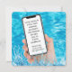 Hand holding a cell phone in water splash with text for a 16th birthday pool party invite.