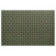 A pattern of interlocking ribbon like shapes inspired by Celtic knot artwork along with wreaths of holly leaves and berries all in a traditional holiday colour combination of red and green with golden yellow accents is featured on this Christmas fabric.