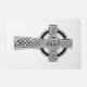 This design features a Celtic cross, which is a form of Christian cross featuring a ring (or nimbus) that emerged in Ireland, France and Great Britain in the Early Middle Ages. it became widespread through its use in stone high crosses, especially in regions evangelized by Irish missionaries, from the 9th through the 12th centuries. The form gained new popularity during the Celtic Revival of the 19th century. The Celtic cross is now appreciated around the world.
