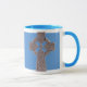 Enduring christian symbol in Ireland and Scotland, the Celtic cross is a beautiful expression of faith. Here, an old silver cross has been photographed and printed against a blue background on a ceramic coffee mug. "Ringer" mug is available in six colours Comes in two sizes - 11oz or 15oz Dishwasher and microwave safe Large handles make it easy to hold Other styles available