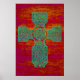 Here, artist Aric Jorn rendered his hand-drawn Celtic cross in a green copper patina over deep red background. Inspired by thoughts of elegant Christmas gatherings.