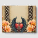 Celtic elegance with a heart and wings. An elegant, decorative frame characterized by Celtic knotwork. A vibrant red heart stands out as a central element at the bottom of the design. Within the heart is a Celtic knot symbol, symbolizing connection and protection. The heart is flanked by dark, feathered wings, giving it a majestic and protective appearance. Delicate peach blossoms with yellow centres are arranged on either side of the heart.