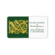 Sheets of name and address labels that feature an ancient celtic motif of a coiled golden snake on a dark green background. The background colour can be changed with the Customize It button.