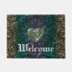 Celtic Heart Mandala In Green and Gold Original Doormat. A gold trimmed Celtic Heart Knot in a colourful metallic mix of green, gold and purple in the centre of a green, blue, lavender and gold mandala over black, white or metallic green. Celtic knots are a traditional Celtic art form, notably characterized by having no beginning and no end, that symbolize eternal love and the never-ending cycle of life. They have become a favourite symbol in many cultures and civilizations around the world and with many practitioners of magic or mysticism today. The Celtic Heart knot is an endless knot in the shape of a heart and represents eternal and endless romantic love.