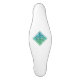 A ceramic cabinet pull with a blue-green Celtic knot diamond design.
