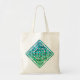 A budget tote with a blue-green Celtic knot diamond shaped design against a white background.