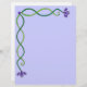 This stationary features atop and left side border design of intertwining vines with purple flowers. Background colour can be changed.