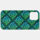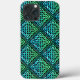 An iPhone 13 Pro Max Case with a blue-green Celtic knot repeated tile pattern against a black background. Not an iPhone 13 Pro Max? No worries, it's also available for other device types =)