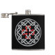 A liquor flask with a Celtic knot design with a red square cross in the centre.
