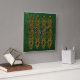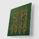 Gold Celtic knot decoration with ivy over a green wall background.