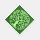 Paper napkins in a stylized, Celtic knot, tree of life design in light green on a dark emerald green background