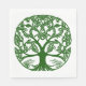 Paper napkins in a stylized, Celtic knot, tree of life design in dark emerald Green on a white background